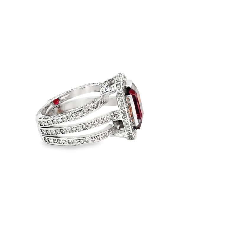 18K White Gold Diamonds Cocktail Ring with 5.8 Brilliant Cut Ruby