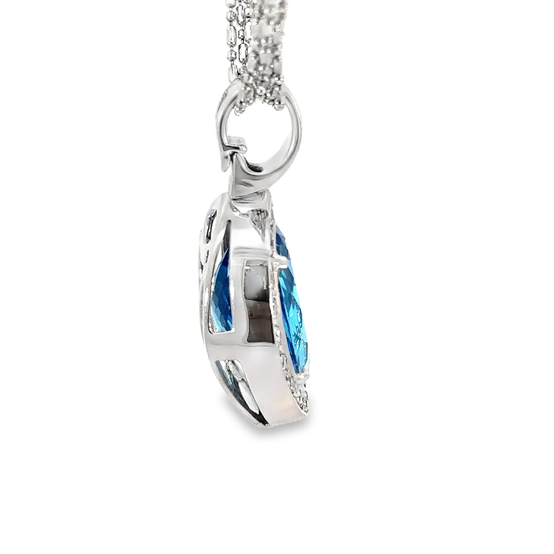 18K White Gold Charm 5 Strings Necklace with Oval Cut Blue Topaz Pendant
