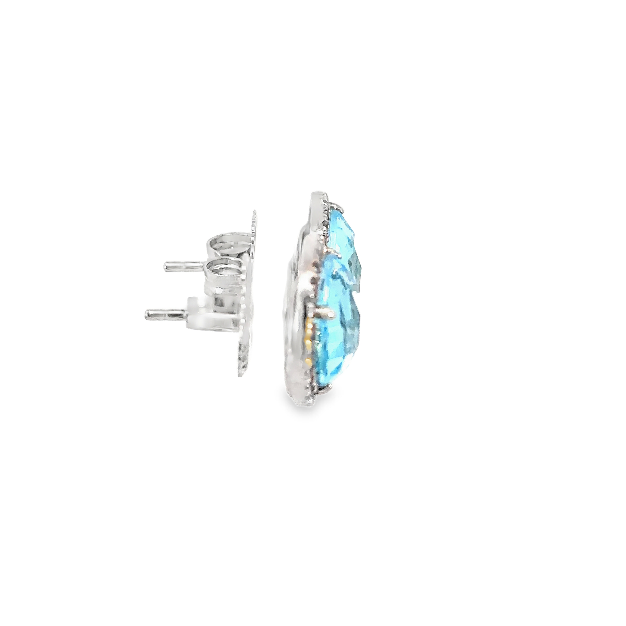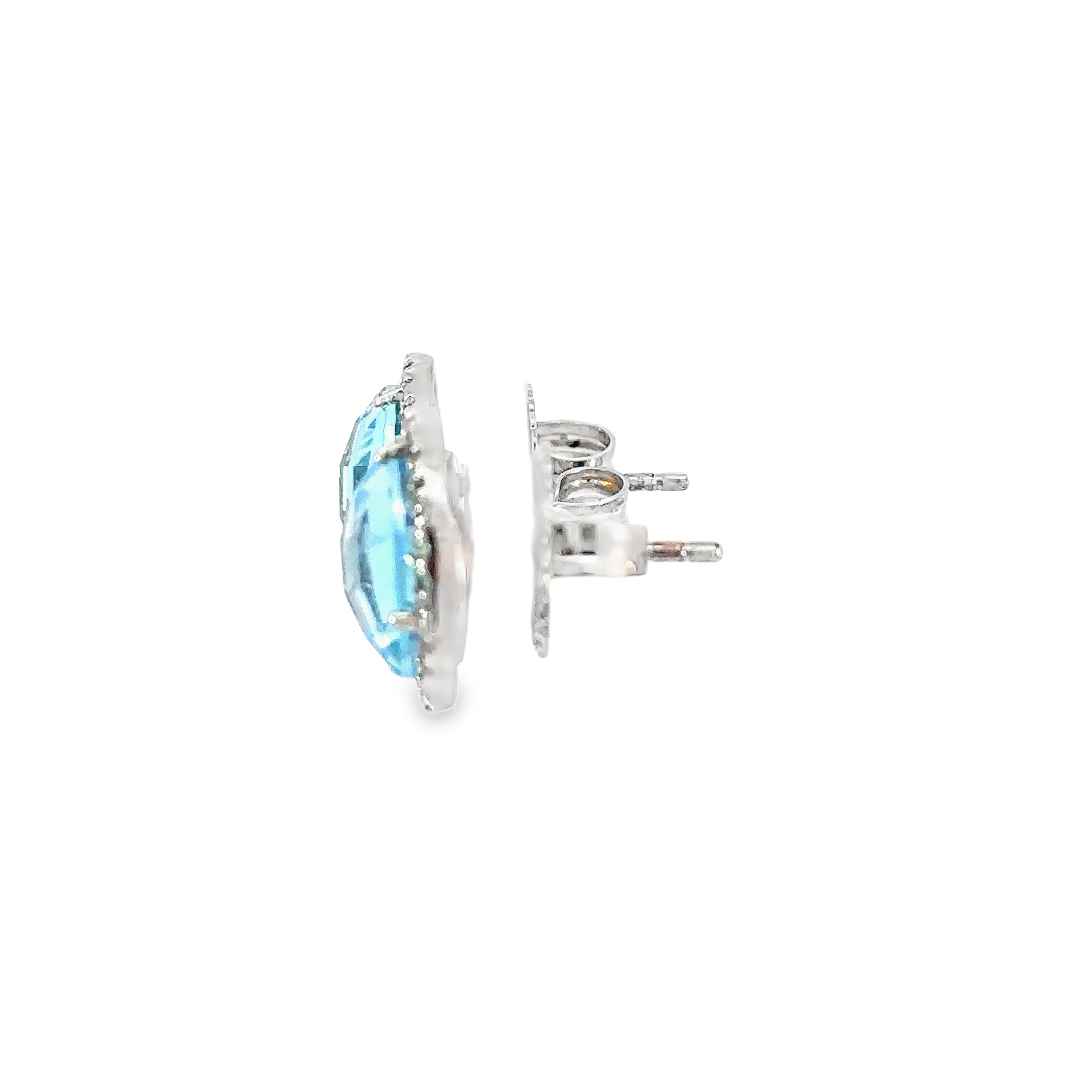 Silver Diamonds Stud Earrings with Bluish Green Aquamarine